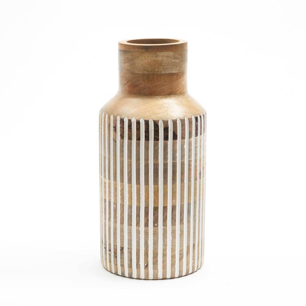 Handcrafted Large Wood Vase - Tall Cylindrical Wood Flower Vase with Grain, Rustic Modern Farmhouse Centerpiece for Living Room, Dining Table, Entryway - Wood Vase 7.5x15.5\